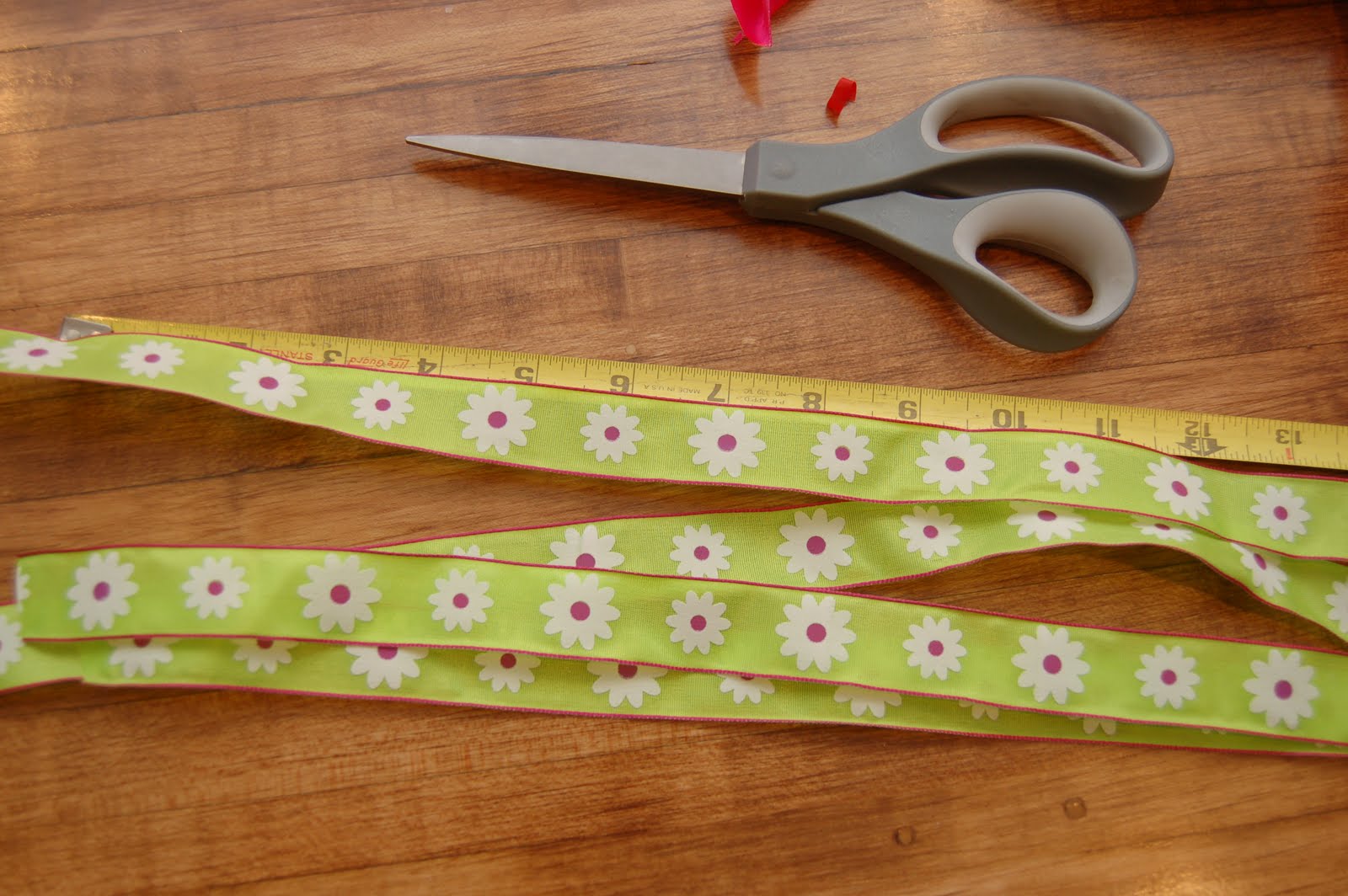 Step2) Cut all your ribbon the same length. I used about 17" long pieces for my wreath.